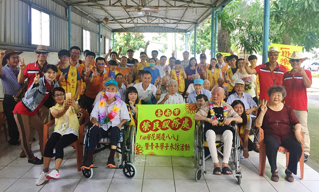 【記者于郁金/臺南報導】臺南市榮服處結合暑期青年學子18人、榮欣志工10人、高雄榮總臺南分院6人、傻瓜三人組樂團,特別於8月8日當日上午辦理「向陽花開慶八八」活動,活動於荔宅里大成退員宿舍舉辦,榮民長輩30餘人一起同樂,參與活動青年學子和榮民長輩活動中都展露出歡樂幸福洋溢!