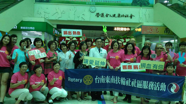 臺南東南扶輪社社長陳美麗表示,已經與臺南醫院共同辦理捐血活動第4年,社員反應成效很好,在工作之餘,齊聚一堂,參與社會公益活動,讓社員們參與捐血活動,大家暫時放下手邊的工作,挽起衣袖,扶輪社並準備豐富禮物,提供完成捐血夥伴,體會「捐血有你 讓愛延伸」時刻。