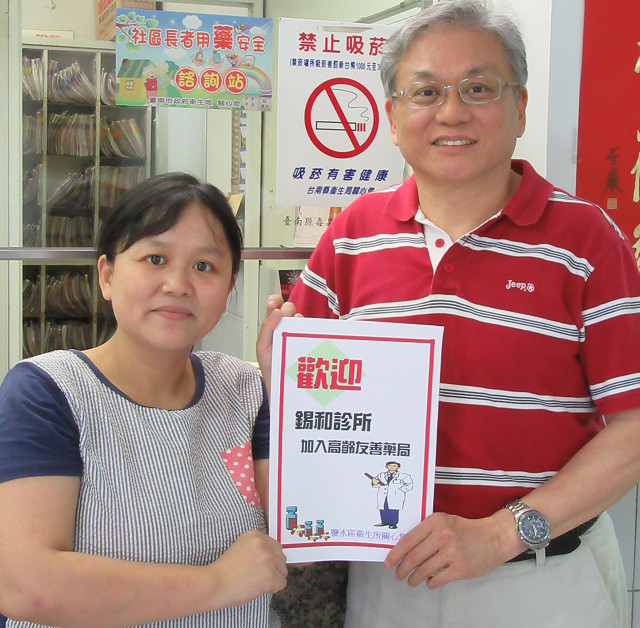 【記者于郁金/臺南報導】臺南市鹽水區衛生所於106年度邀約在地錫和診所(臺南市鹽水區武廟路31號)加入「高齡友善藥局」服務行列。錫和診所院長表示,來就診民眾當中,多數為65歲以上長者,非常樂意能共同加入服務行列,成為守護民眾健康的第一線人員,而臺南市政府衛生局為了讓民眾能清楚辨別「高齡友善藥局」,還貼心製作標章張貼以供民眾辨識。