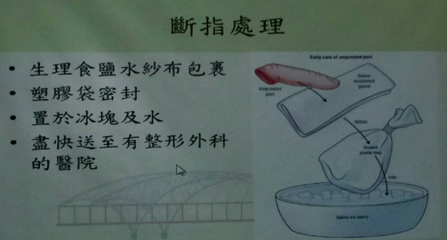 洪國書醫師表示,如果真的因為封口機造成手部外傷,除緊急關閉電源並盡快脫離機器外,應立即用冷水沖洗受傷部位,以減少殘餘高溫對手部的進一步傷害;另外,如有被機器截斷的肢端,務必用生理食鹽水浸濕的紗布包好,再用塑膠袋密封後浸泡於冰水中,連同病患一起送到有整形外科的醫院,盡快進行顯微重建手術,以求獲得最佳的預後。