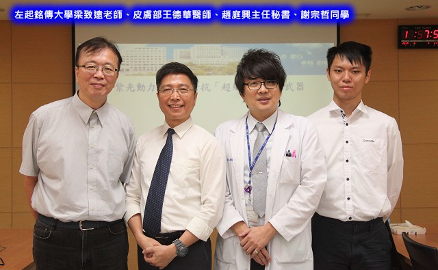 【記者于郁金/臺南報導】成大醫院皮膚部皮膚光療科主任王德華醫師與銘傳大學生科系梁致遠老師,組成生技研究團隊,近期研發出以紫光殺菌的技術,可以成功殺死醫院中具多重抗藥性的金黃色葡萄球菌,提供了一種非抗生素治療的「紫光動力殺菌法」,避免細菌發展出更厲害的抗藥性超級惡菌。