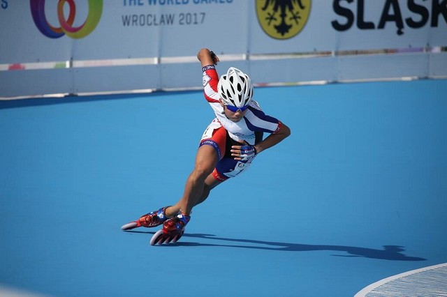 【記者于郁金/臺南報導】臺灣之光!南大楊合貞同學2017臺北世大運滑出三金!2017年世界大學運動會本週在臺北如火如荼展開,國立臺南大學體育系碩士班二年級楊合貞同學以滑輪溜冰代表隊選拔賽第1名之姿參賽,果然不負眾望,在8月21及22日連續2天的賽程,就勇奪女子1萬公尺計點淘汰賽、1萬5000公尺淘汰賽、1000公尺爭先賽等3面個人金牌,也為臺灣代表隊追平歷屆最佳成績,捷報傳回學校,南大師生莫不歡欣鼓舞,與有榮焉!