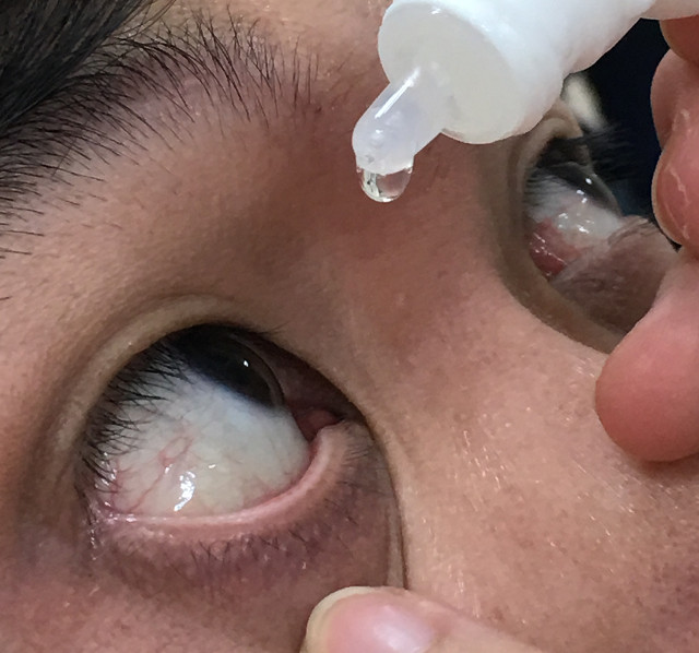 散瞳劑,濃度越高抑制近視效果越強,但副作用也越強,包括畏光,此為最常造成散瞳劑治療失敗的原因;視力模糊,尤其是看近的時候;增加眼睛水晶體、視網膜對紫外光的暴露,可能增加白內障與黃斑部病變;因此,長期點散瞳劑的小朋友外出須戴帽子遮陽,以排除畏光與紫外線暴露之副作用。