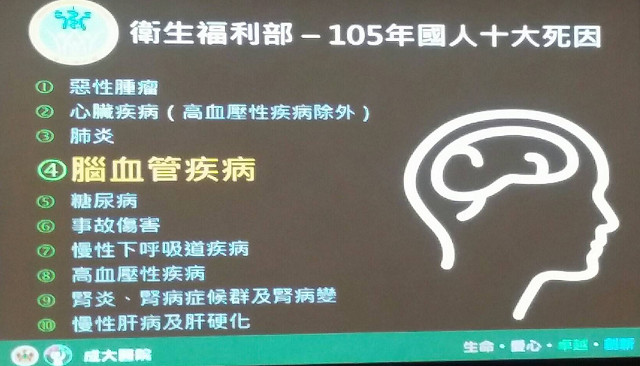 施裕翔醫師說,腦中風為國人十大死因第四名,也是造成殘疾失能的重要原因之一;衛生福利部2016年統計指出,有將近1.2萬人因腦血管疾病死亡,其中絕大部分為動脈血栓阻塞血管導致的缺血性腦中風,以往大血管梗塞治療多以藥物及靜脈注射血栓溶解劑為主,現更增加動脈取栓術的積極治療方向。