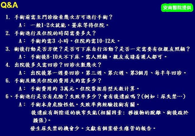 (1)微創手術:以腹腔鏡手術,自腹壁側切取1片約12公分*10公分的腹膜組織。