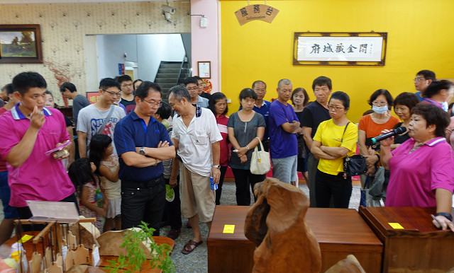 9月進入開學了,參觀民眾以中年及青壯年均多,且放眼望去,不少都是熟面孔,9時不到均以在賣場東挑西看的,一樣不到10分鐘,號碼牌以被索取一空;一位住在東區曾小姐自從半年前發現藏金閣,每月必來報到,抱著每周來尋寶的心情,這次看中一組10000元的似中藥藥櫃的檜木矮櫃,非常奇特及製工極為細緻,非常喜歡,一路過關斬將,競標途中,還受到傍邊母親攔阻,但她仍鍥而不捨,終於14,300標得,再詳問木工師傅,原來該多個小抽屜櫥櫃,原來是民國57年圖書館書卡置物櫃,歷史近50年。