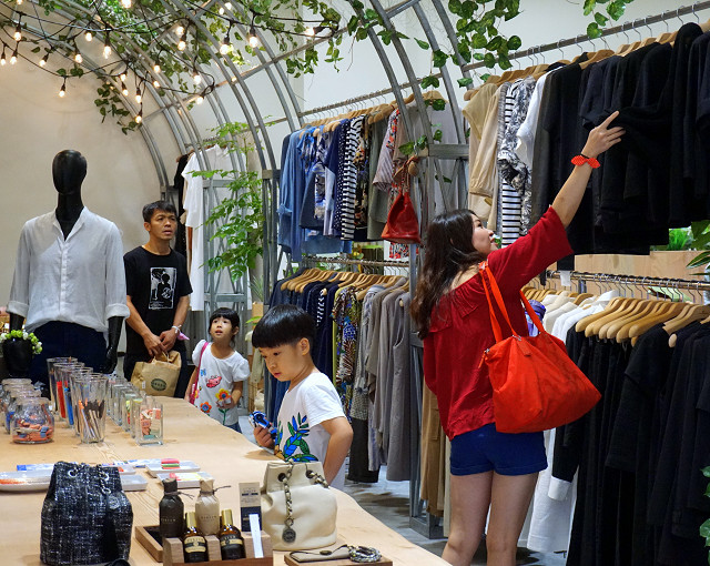 南紡購物中心表示,服飾部分,GALOOP特殊櫃位設計,讓民眾有如置身桃樂絲的祕密花園中,販售台灣設計款男女裝及童裝;另,強調穿出自我風格的BURS.專櫃,著重無性別限制的中性服裝設計,服裝材質採用大量天然棉麻布料,再運用粗規格的車縫線,加以水洗的後處理方式,完美呈現天然素材服飾。