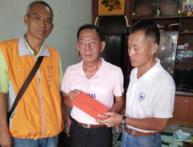 臺南市榮民服務處為使獨居榮民及清寒榮民、遺眷,能感受到輔導會及榮服處對渠等關懷照顧服務,由該處處長何興隆代表,親發秋節慰問金及急難救助金,共計遺孤2位、榮民2位,各發給新台幣1萬元整,提前歡渡佳節。