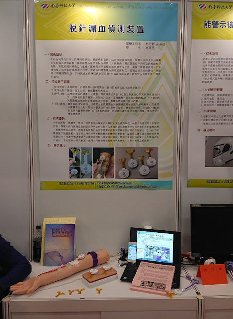 此次參賽系列作品榮獲最高榮譽鉑金獎作品為電機系杜翌群老師及其團隊開發「脫針與漏血偵測裝置」,該產品自行設計的陣列感測貼片搭配映射電路,結合無線傳輸功能,開發可多床使用的穿戴式脫針漏血感測裝置,當漏血達危急的情況, 隨即發出聲響與警示燈,同時透過藍芽無線傳送訊息至醫護站或APP讓護理人員即刻做出適當的處理;該項產品已取得國內外共3項專利,且於2017年2月於國家研究 院動物實驗中心以及高雄榮民總醫院台南分院完成臨床動物試驗與I RB人體試驗,在500名洗腎人次的測試中,並無不良反應且量測準確度達100%;希望藉由本研究所提出的裝置,改善臨床洗腎機的照護死角,提升臨床洗腎病患的安全,也能作為未來臨床相關應用設備的參考。