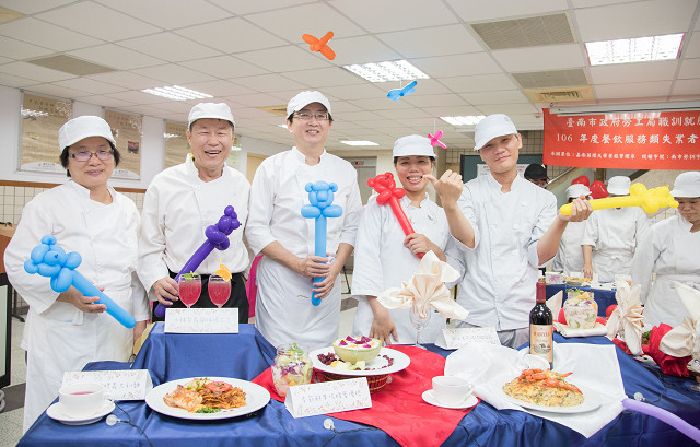 臥虎藏龍「西式料理培訓班」,學員來自四面八方,各行各業,除端出一道道美味精緻的西餐料理外,成果展展場的氣球佈置也是由班上學員共同規劃佈置。學員黃蘭雅表示,她臺北從事電視媒體工作十多年,但卻一直懷抱創業夢想,後因想搬回臺南陪家人,便毅然辭去台北工作,回鄉追夢;進到「西式料理培訓班」,才知道餐飲業的趨勢與餐點製作,真是一門大學問,需要花時間用心規劃,才能打造出吸引客人上門的餐廳。