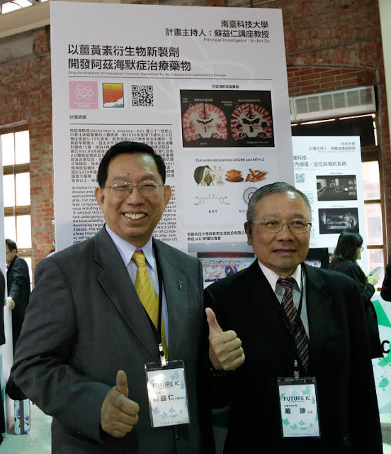 蘇益仁講座教授表示,「以薑黃衍生物新製劑開發阿茲海默症治療藥物計畫」,旨在開發薑黃素衍生物治療AD之新藥;失智症是21世紀最嚴重的老化疾病。 2020年75歲以上約10% 會失智,65%起因阿茲海默症(AD);AD目前僅有症狀治療藥物,亟需開發治本藥物;全球商機每年數百億美金,為最重要藥物研發領域。薑黃素具多重生物功能,具有抗氧化、抗發炎及抑制amyloid產生多種功能,是治療AD最重要的潛在藥物;但百年來未被開發成藥物,在過去5~10年間,科學的進步,包括新合成衍生物、新型製劑、及奈米等技術之進步,已克服薑黃素不易被腸道吸收、易被代謝,半生期短、缺乏專利保護等缺點,而使薑黃素衍生物及新製劑可以開發成藥物。