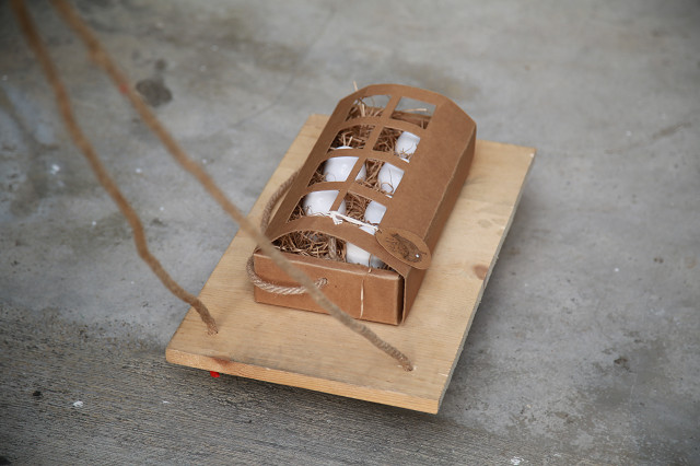 一般設計學程或物理學學生都玩過丟雞蛋的教學活動,實地測試包裝耐摔程度,或重力加速度的確存在;遠東科技大學創意商品設計與管理系老師黃苾芬,教授包裝設計課程,這學期邀請到臺南113工房的執行總監陳逸鴻老師擔任協同教學業師,在課程安排上,除了每週給同學一個小課題,循序漸進地讓學生進行完整包裝設計需要思考的議題;在期中審查的主題,便是用雞蛋包裝進行設計,並用實務操作的考試方式,進行檢測設計成果。
