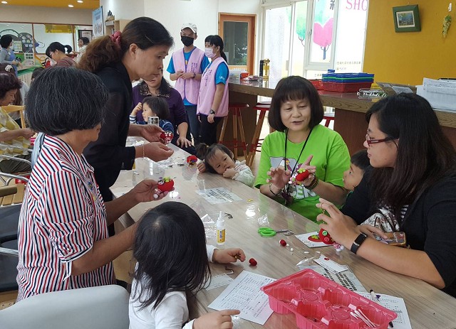 現場只見小孩聚精會神,小心翼翼的擺上珠珠,貼上娃娃眼睛,和父母、阿公、阿嬤討論怎麼配色;完成作品後,參與民眾挪移到路竹育兒資源中心精心擺設的佈置合照區,為今天的活動留下最美的紀念照;不少小朋友手拿鑰匙圈意猶未盡說,下次還想再來!