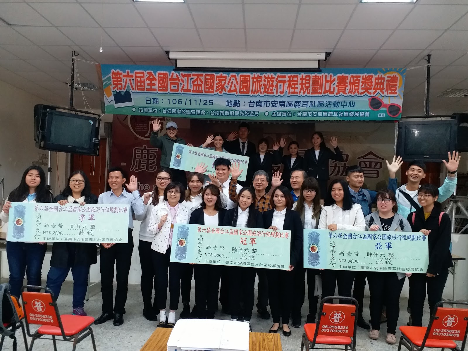 【記者于郁金/臺南報導】南臺科技大學之光再添一樁!該校休閒系學生團隊參加由安南區鹿耳社區主辦台江國家公園、臺南市政府指導「第6屆全國台江盃國家公園旅遊行程規劃比賽」,由休閒事業管理系施鴻瑜:蔡必昌老師所指導之作品「漫活漫步」榮獲冠軍,「FEELING台江趣」獲得亞軍;勇奪此次競賽2項大獎,實屬不易。