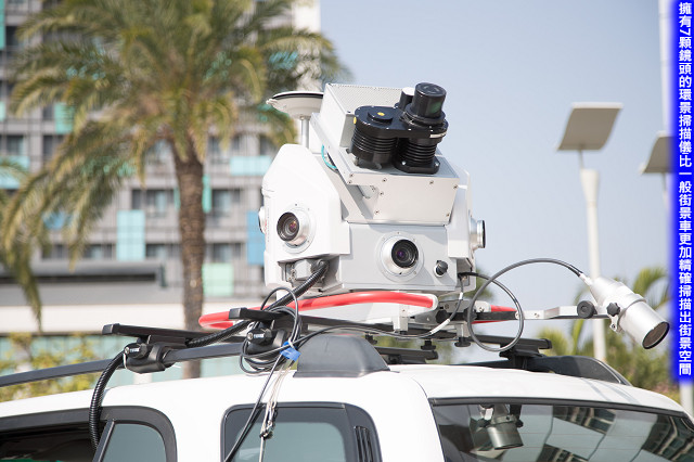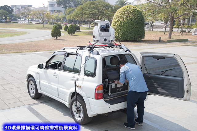 周玉端指出,Google街景車僅具有拍攝街頭景象的功能,此次展出和實作的車載式3D環景雷射掃描儀,掃描半徑120公尺,能一邊行駛,一邊將所經過的街景完整且精確地掃描為數位3D資料,有助於都市規劃與更新的設計。