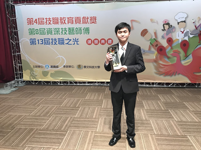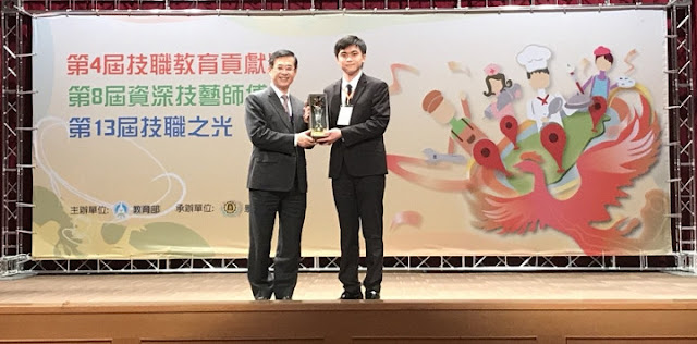【記者于郁金/臺南報導】2017第13屆技職之光頒獎典禮,106年12月8日在集思交通部會議中心舉行,本年度一共頒發30件,包含「競賽卓越獎」8件、「技職傑出獎」22件,共44人獲得表揚;遠東科技大學機械系蔡翰陞、戴良宇雙人組,在105學年度國際發明展共獲得3金1銀,成績卓越,在「技職傑出獎」獲得發明達人獎,為遠東科大再添一光榮事蹟。