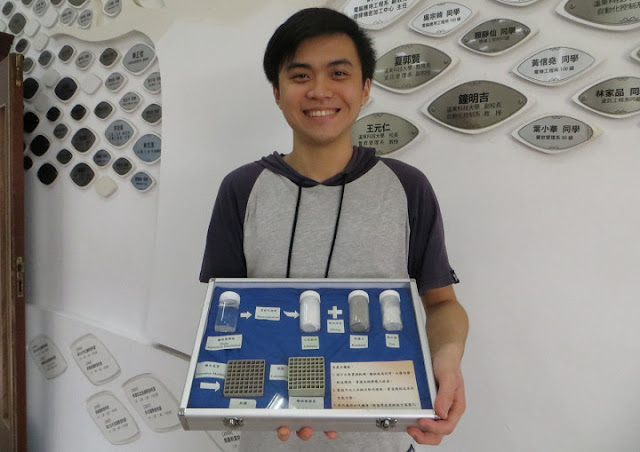 蔡翰陞表示,自己從高中開始都是讀機械系,後來發現對於環境相關的事物比較有興趣,在與老師討論過後,決定以「事業廢棄物」為出發點,將對環境有害或是利用價值低的廢棄物回收後再利用,減少對環境傷害,創造出更高的價值為目標;由於原先不是化學系或環境專關科系畢業,過程中,不時會在需要專業相關知識時碰壁,但是他相信只要願意學習、找尋答案,就沒有解決不了的問題。