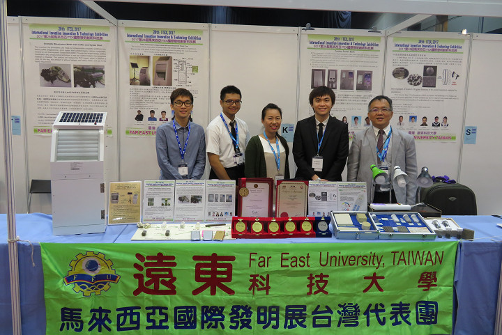 蔡翰陞、戴良宇105學年度國際發明展,得獎作品包括第45屆日內瓦國際發明展以《紙漿汙泥資材化衍生性固態燃料》獲得金牌、第68屆德國紐倫堡國際發明展以《輕量化且高散熱效率的高效率節能燈具》榮獲銀牌獎、第68屆德國紐倫堡國際發明展,以《紙漿汙泥資材化衍生性固態燃料》再得一面金牌、第28屆馬來西亞ITEX國際發明展以《廢鋁電解液資材化觸媒轉換器之方法》拿下金牌,非常不容易;這些作品指導老師遠東科大副校長鐘明吉、機械系教授吳俊毅、陳智成也都感到與有榮焉。