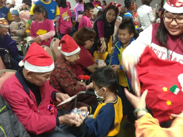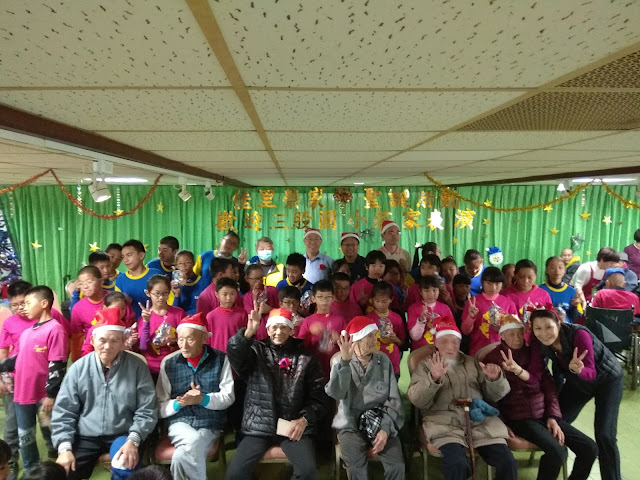 【記者于郁金/臺南報導】位於臺南七股區佳里榮家,為迎接聖誕佳節並增進與地方的情感交流,12月15日舉辦慶祝聖誕節活動,特別邀請三股國小由教務組王主任帶領全校國小及附設幼兒園共130位小朋友前來,表演直笛、合唱、英文讀劇及唱跳表演等,榮家長輩們感受到小朋友充滿活力的演出,長輩們臉上笑容不曾間斷,活動後由小朋友獻上自製耶誕卡,並幫爺爺奶奶搥背按摩,長輩們也準備禮物回饋給小孫子們,大手拉小手慶祝聖誕節,場面溫馨感人。