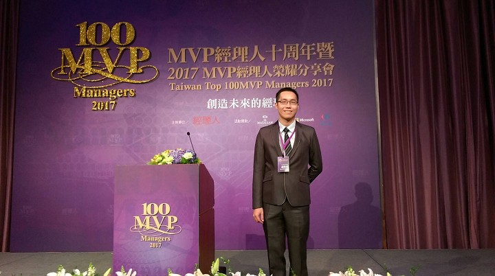 日前於臺北威斯汀六福皇宮舉行的年度百大MVP經理人榮耀分享會上,趙啟成校友除感謝有機會參與由《經理人月刊》舉辦的2017百大MVP經理人徵選活動,更幸運地獲選為今年「100 MVP經理人」;他感性地訴說這份殊榮要歸於父親的扶持與放手,讓他能持續保有以藍領為客群的老顧客,更能加入數位行銷力量,完美地擴展年輕市場以及掌握療癒商機;他同時更感謝當天帶著祝福,偕同他北上的母校EMBA執行長鄭滄祥、第7屆EMBA學友會輔導理事長蘇永昌及第EMBA10屆的同班同學,他相信南臺科大EMBA師長、同學及校友們絕對是他事業永久的夥伴與後援。