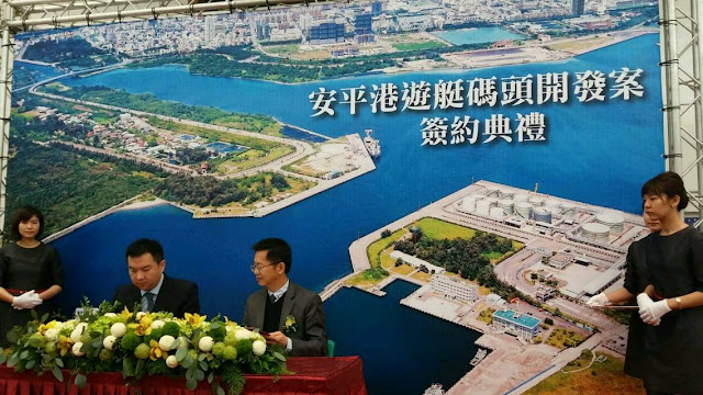 【記者崔家齊/于郁金/連凱斐/臺南報導】全國最大的水域陸域綜合遊艇港招商案「安平港遊艇碼頭招商投資案」,歷經臺灣港務公司多年籌劃評估後,日前經公開徵選評比,由亞果遊艇集團獲得最優投資人,並於21日舉辦簽約記者會;亞果遊艇取得全區12.7公頃(陸域9.7公頃、水域3公頃)、最長50年的經營權,將挹注國庫收入至少18億元,興建投資20億元;預計明年底可完成遊艇碼頭建置,109年底完成全區開發,開創臺南古都水岸觀光新亮點,指日可待。