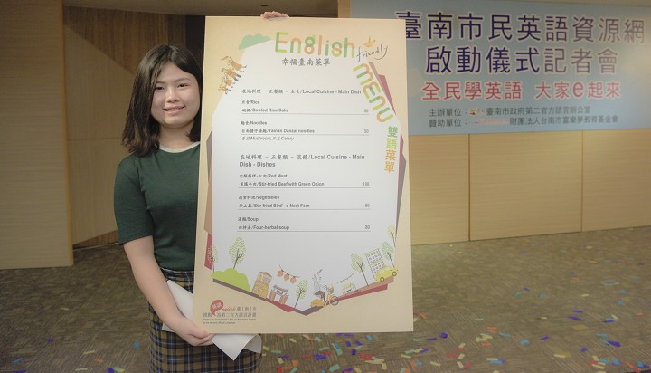 在網站裡,市民點入「英語菜單」專區,就可以隨心所欲地製作獨一無二的雙語菜單;網站中亦提供臺南百大小吃及伴手禮菜色的英文,供民眾可以隨時查詢使用;在「臺南市民英語資源網」專區,我們也依照食、衣、住、行、育、樂分類,提供生活常用的英語句型,讓民眾沒有門檻即跨入英語學習領域;而外籍人士到政府機關諮詢時,具備基礎英語能力的公務人員也是英語友善城市的一角,因而設立「公務人員英語專區」,鼓勵公務人員精進英語實力。