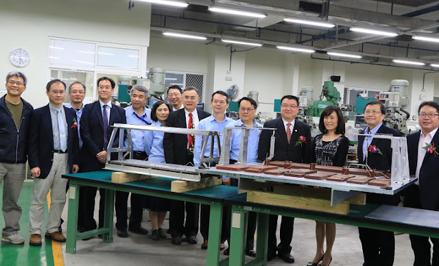 捐贈典禮在成大機械系館三星講堂舉行,蘇慧貞校長致贈感謝獎牌給漢翔董事長廖榮鑫,隨後一行人為型架揭幕;成大副校長陳東陽、研發長謝孫源、前副校長顏鴻森、工學院長李偉賢、理學院院長陳淑惠等成大師生,以及漢翔副總杜旭純、副總何保華、陳宗鴻主任、王欽漢處長等在場觀禮。