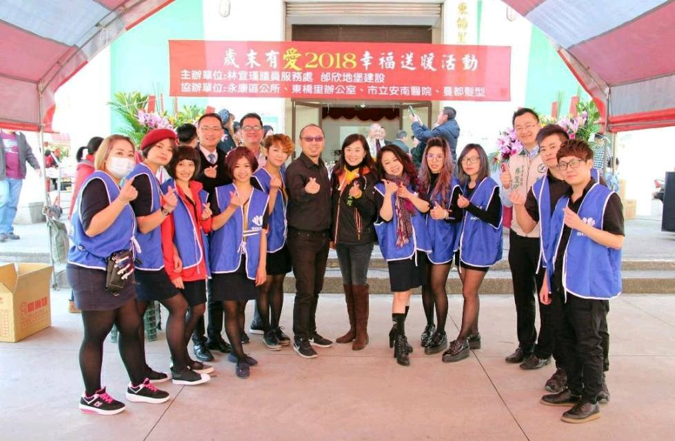 現場民眾於寒冬中排序領取愛心物資及紅包,也享用服 務團隊準備的熱騰騰的包子和湯圓,並接受義診與義剪服務,整體活動內容豐富周到;其中,週六上午生意最好的曼都髮型,力挺此次公益活動,曼都中華店週六(13)上午暫停營業,在區經理胡燕璋的帶隊下,動員全店10位設計師來到現場服務永康鄉親,過程中座無虛席,一路從上午9時服務到接近中午活動結束,公益精神令人激賞。