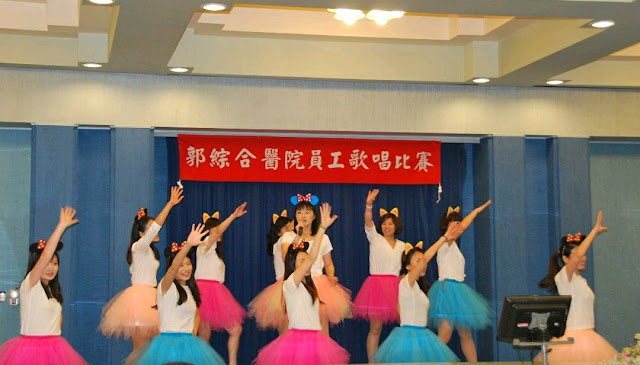 【記者于郁金/連凱斐/臺南報導】樂趣熱情高唱現身臺南市郭綜合醫院月子中心,黃嘉鈴在同事伴舞下高唱《新的心跳》,比喻新的生命誕生,於院內員工歌唱比賽勇奪第1名;教研部腦力激盪設計貓耳朵的美少女舞群,圍繞于金婷所唱《年輕不要留白》美妙歌聲下,勁歌熱舞得第2名,國欣護理之家同仁的原自民服飾,由柯文媛的《站在高岡上》高亢演唱而熱鬧非凡,獲得第3名,獲得熱烈掌聲鼓勵。