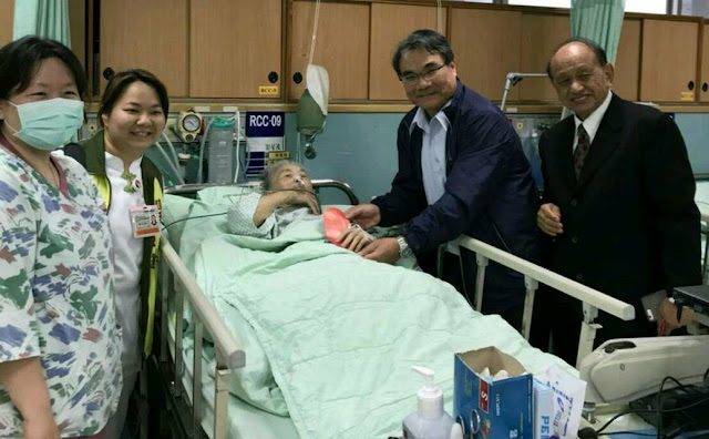 有鑑於高齡社會的來臨,給高齡患者一個有溫度的醫療服務,一直是南市醫努力的方向;秀傳醫療體系總裁黃明和偕同台南市立醫院蔡良敏院長,探訪院內近百歲謝姓患者,關心患者治療狀況並致贈新春紅包;謝姓阿嬤很感謝醫療團隊的照顧,黃總裁的探訪讓她感到「揪甘心」。