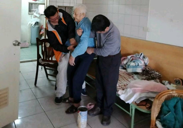 臺南市榮民服務處表示,本處責任區謝輔導員、服務組長劉志騰獲報後,立刻至醫院探視佘妻,了解家庭狀況並取得住家鑰匙,前往開門,並將乏人照料之佘伯伯料理中餐及擦淨身體,並聯絡子女返家協助處理;另積極協調白河榮家緊急安置,獲得白河榮家鼎力協助,當日順利完成入住,讓榮民得到安全與適切的關懷照護,落實輔導會妥善照顧榮民的服務宗旨。(照片由臺南市榮民服務處提供)