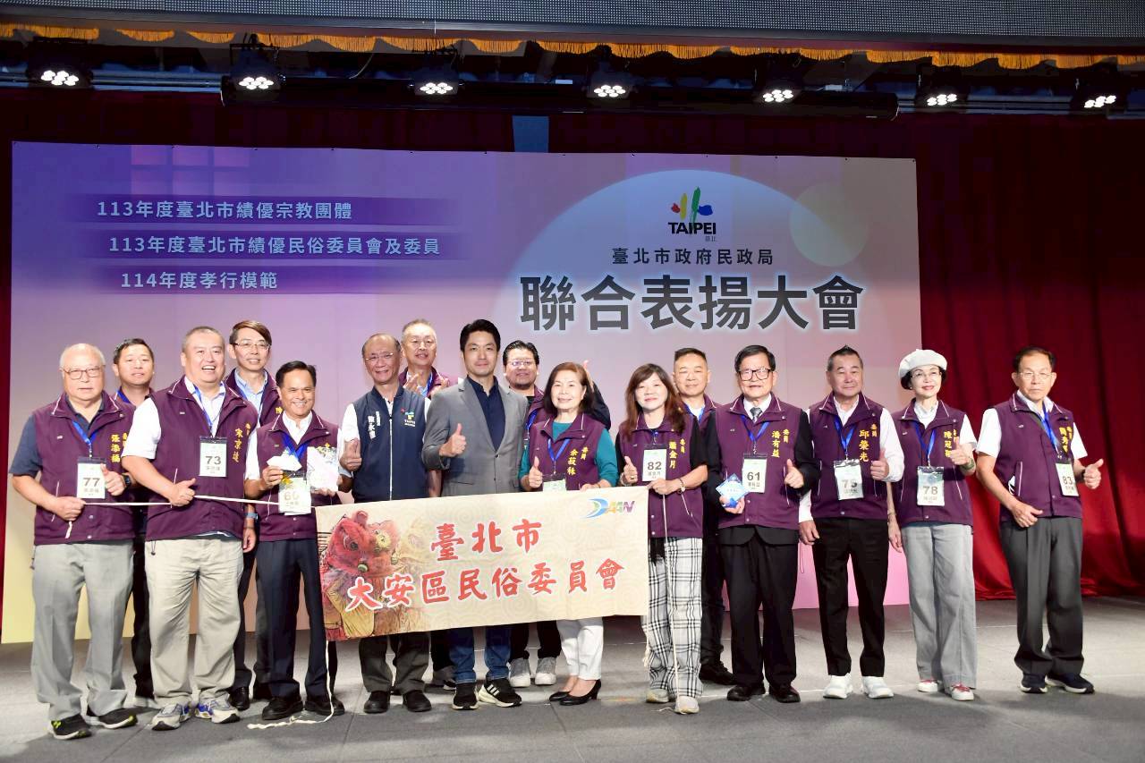 【本報訊】臺北市長蔣萬安昨(12)日出席113年度臺北市績優宗教團體、民俗委員會及委員暨114年度孝行模範聯合表揚大會,他在致詞時感謝臺北市的許多宮廟在去(113)年0403大地震慷慨解囊、伸出援手;還有民俗委員會及委員們提供清寒獎助學金、幫助獨居長者;另外,也感謝獲獎的「孝行楷模」能夠樹立孝親的典範。