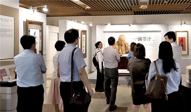 【記者于郁金/臺北報導】「星雲大師著作藏書特展」首展,9月26日至10月20日在國家圖書館展出。館長曾淑賢特別接待北京首都圖書館副館長陳堅等人參觀並表示,此特展集書展、書法展、全集捐贈與講座等活動於一系列,突破國家圖書館單一展覽模式,展現新文化氣象。