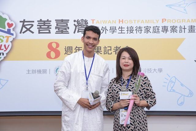 在記者會一開始先以計畫8週年成果回顧影片溫暖人心,並邀請3組接待家庭及境外生親臨現場分享接待的點點滴滴,已來臺灣兩年的布吉纳法索生那伊伯(音譯,Najim Ibrahim)在臺上說道 :「真的很感謝臺灣提供的獎學金,讓我有機會來到臺灣讀書,這真的是我一生中非常難得的機會,來到臺灣後,我發現臺灣對外國人非常地友善,是一個非常適合求學求知的國家;也因為這個計畫讓我認識了呂小姐一家人,藉著他們我更了解臺灣這個國家,其中也包括了迷信這部分,我記得有一次吃完晚餐,我把筷子插在盤中間,呂小姐的爸爸媽媽很緊張得跟我說,不要插這樣,因為這樣代表”死亡”的意思,讓我著實的嚇了一跳,也因為這樣,我多學到了臺灣人的傳統禮俗;而我最難忘的是,是我的home爸教我打麻將,現在三不五時我們還會一起打麻將,我想說的是,我真的非常幸運,在臺灣能有這麼棒的家人。」那伊伯分享完後,拿出了他偷藏好的小花束獻給家庭,以表達他對家庭的感謝。