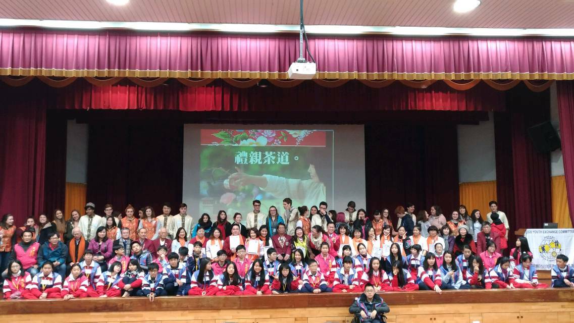 【記者于郁金/臺北報導】臺北市立建成國中與國際扶輪3520地區青少年交換委員會於2月5日在該校2樓大禮堂舉辦「士子之心國際文化交流茶會」,為外國青少年帶來一場中華文化的學習饗宴,由戴羽禎老師與13位茶藝老師司茶,透過茶道之沏茶、賞茶、聞茶、飲茶,帶領國際學子了解「奉茶為禮尊長者,備茶濃意表濃情」生活真意;活動溫馨熱絡,拉近學校師生、國外學子朋友彼此間距離,會後大夥相見歡大合照,為當日活動畫上圓滿句點。