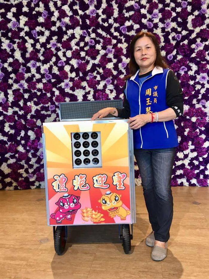周玉琴三場競選總部成立,熱熱鬧鬧的鞭炮聲不絕於耳,但是怎麼沒看到燃燒的鞭炮與碎屑呢?原來是耗資數萬元購入環保鞭炮機,利用瓦斯與空氣結合的原理,製造出鞭炮聲的效果,不但音效逼真,還有各種鞭炮聲音模式,還能透過遙控器調整音量大小。輔選人員示範各種炮聲,維妙維肖,迎賓的連炮、迎貴賓車隊的大龍炮、蜂炮一應俱全,甚至沖天炮的聲音也都聽不出破綻,讓不少民眾遮著耳朵但卻遍尋不著「鞭炮在哪裡?」