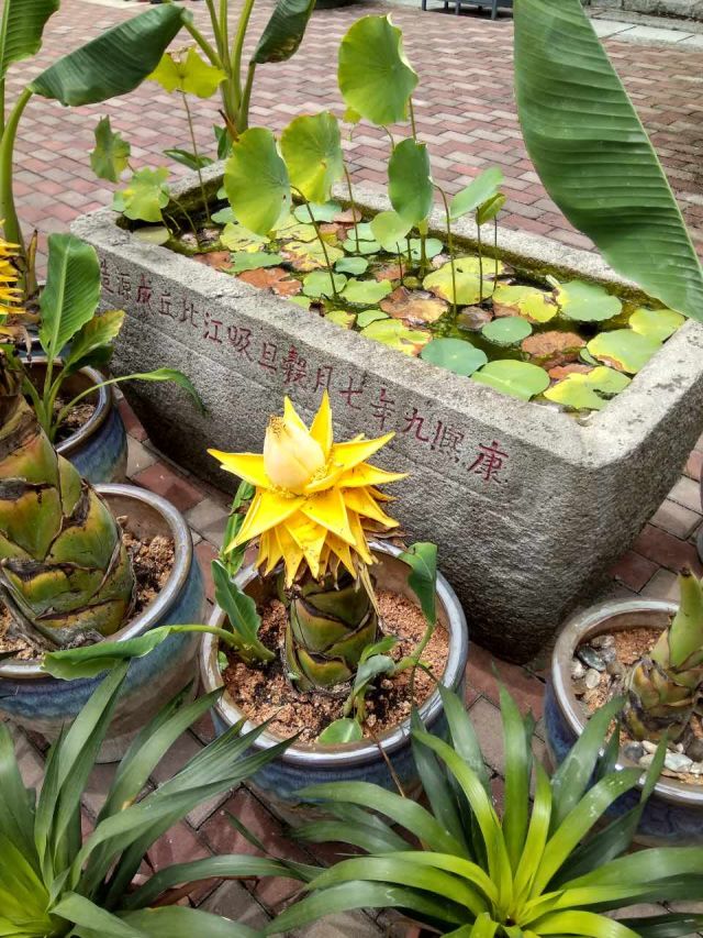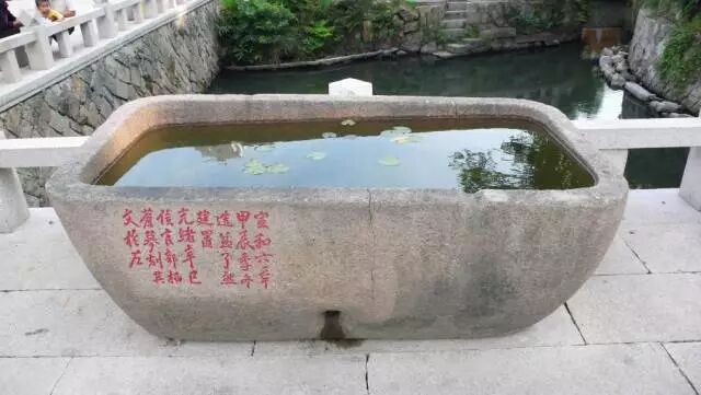 福州鼓山舍利院前清康熙九年石槽已種滿睡蓮荷花,與周邊盆景一樣,變成了純粹的園林擺設。