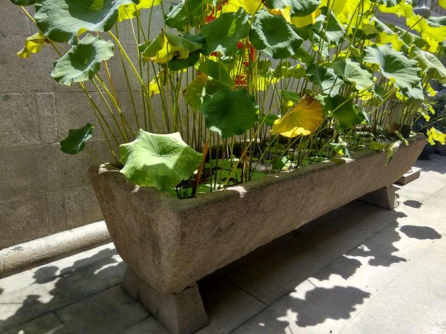 明清以後,北宋廟堂前的這種石槽,逐漸演變成士大夫住宅天井內擺設的一種貯水、養魚、養花草的石槽。