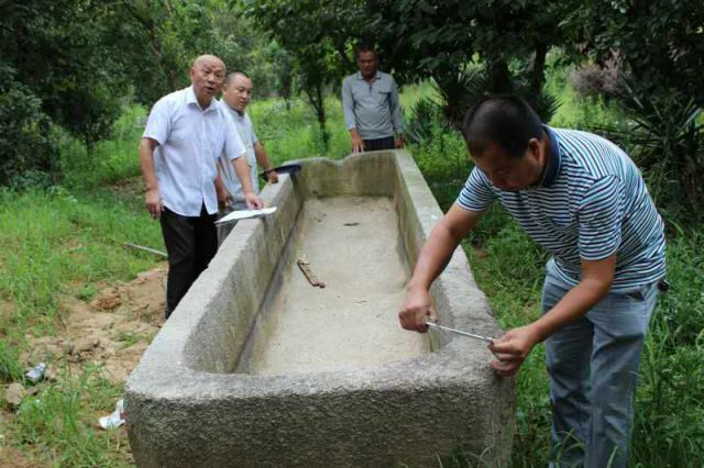 福建省文史研究館每個月都要組織一次館員采風活動。2016年6月21日,我們十幾位館員在陳澍館長帶領下前往羅源縣考察。羅源白塔鄉隱峰寺是我們考察的最後一站。著名書法家陳奮武館員應邀題字。我們幾位館員在禪堂喝茶等待。我偶而問及寺院內有沒有文物古蹟,俗家弟子楊旦旦立即帶我到講經堂建築工地,指著一口巨型石槽。我眼睛為之一亮,從沒見過如此巨大的石槽。仔細辨認石槽外壁刻字,赫然寫著:“當山僧海恭舍錢造,時紹聖三年丙子,歲十月日題”。我請來全體館員觀看,大家都為之一震。這種底下有孔的石槽不同於北方餵牲口飼料的石槽,特別是有北宋紀年刻文的石槽更為珍貴。這次偶然的發現,開啟了福州北宋紀年石槽的研究工作。新興的微信聯絡促進了這項調查研究工作緊鑼密鼓地進行。