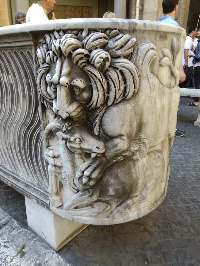 意大利梵蒂岡博物館庭院內洋石槽(獅吞羊)