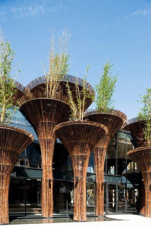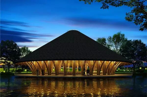 恢宏大氣的格局,不失美感,獨具一格的設計,相當地美妙!還有另一座巧妙融合了傳統藝術和現代建築,完全用竹子編織而成的“穹頂”,呈鏤空網格狀,日照時地面的光影線條交錯,美感十足,拱形外觀,既美觀又充滿自然氣息。