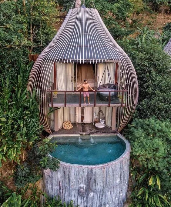 竹屋,森林裡別緻的美麗,回歸大自然的房子,真想去體驗一番。竹子造的臥室,夏天一定十分清涼。能夠住在這樣一個竹房裡,該有多愜意!