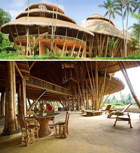 竹子建造的禮堂,同樣地恢弘大氣,用竹子造房屋可以說是一種返璞歸真,看了這些建築才發現,竹材才是自然界裡真正的“鋼材”!