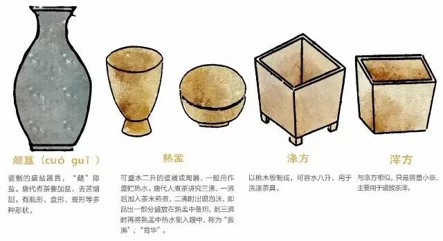 唐代這樣的喝茶方法,叫做“煎茶”:先將餅茶碾成粉末,置於鍋中煎煮,而後再加鹽調味,以去除苦味。煎好的茶用長匙舀至面前的小茶碗中飲用。