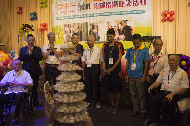 邱昌嶽說,這一次活動也特別安排於823砲戰被砲彈炸傷,造成全盲(聾)及癱瘓,但仍無怨無悔的86歲弟兄林德祿,代表南區弟兄接受秋節慰問金(品)。林德祿為國負傷數十年來的身心煎熬、家屬不離不棄的心路歷程,以及役男陳俊評陪伴林員就醫及關懷,這些動人事蹟已經由中正大學教授王瓊玲撰寫,並出版《待宵花-阿祿叔的八二三》一書。