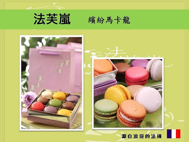 法芙嵐的人氣甜點,經典的「櫻桃白蘭地」,紮實醇濃的起司,融入櫻桃果肉濃得化不開的酒香,讓人永遠忘不了這場奇蹟般的愛戀;「玫瑰馬卡龍」則如青春少女的初戀,用微酸的覆盆子化解馬卡龍的甜膩,又散發出卡士達餡的玫瑰香氣。