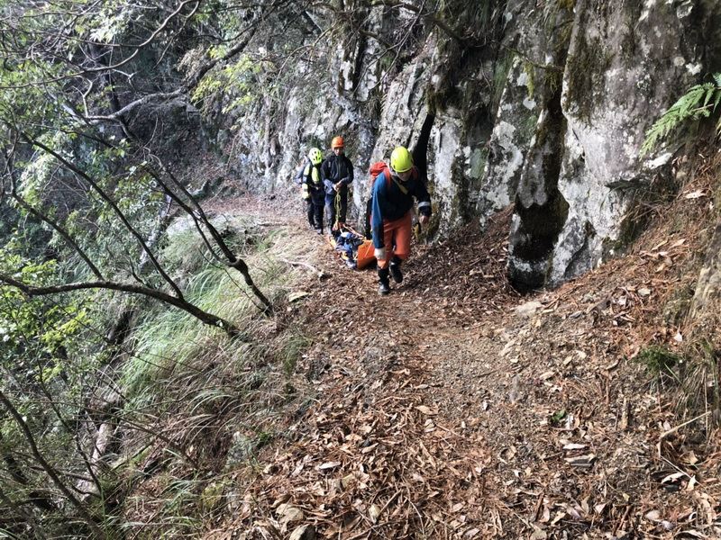 消防局考量近日冷氣團來襲,山區晚間氣溫驟降至5、6度,擔心傷者於山區發生失溫狀況,立即調派其他分隊共計7名人員,於晚上6時由山搜教官小隊長馬明義帶隊在黑夜中冒著低溫疾行,終於在晚上10時45分將傷患安全送達至登山口,由救護車載送至竹東台大醫院檢查。