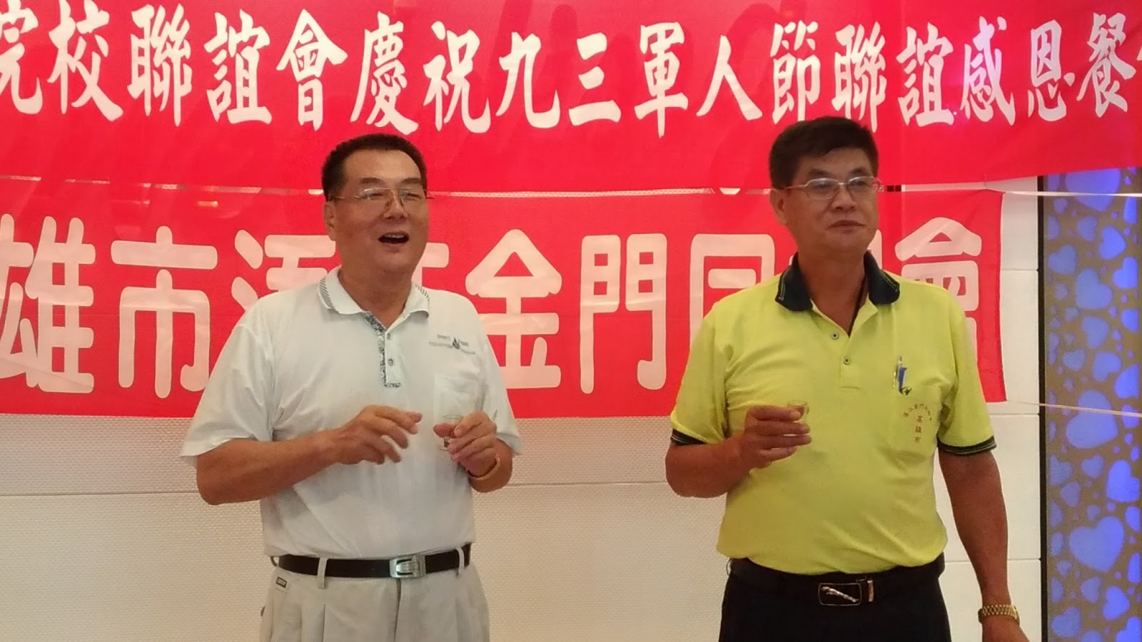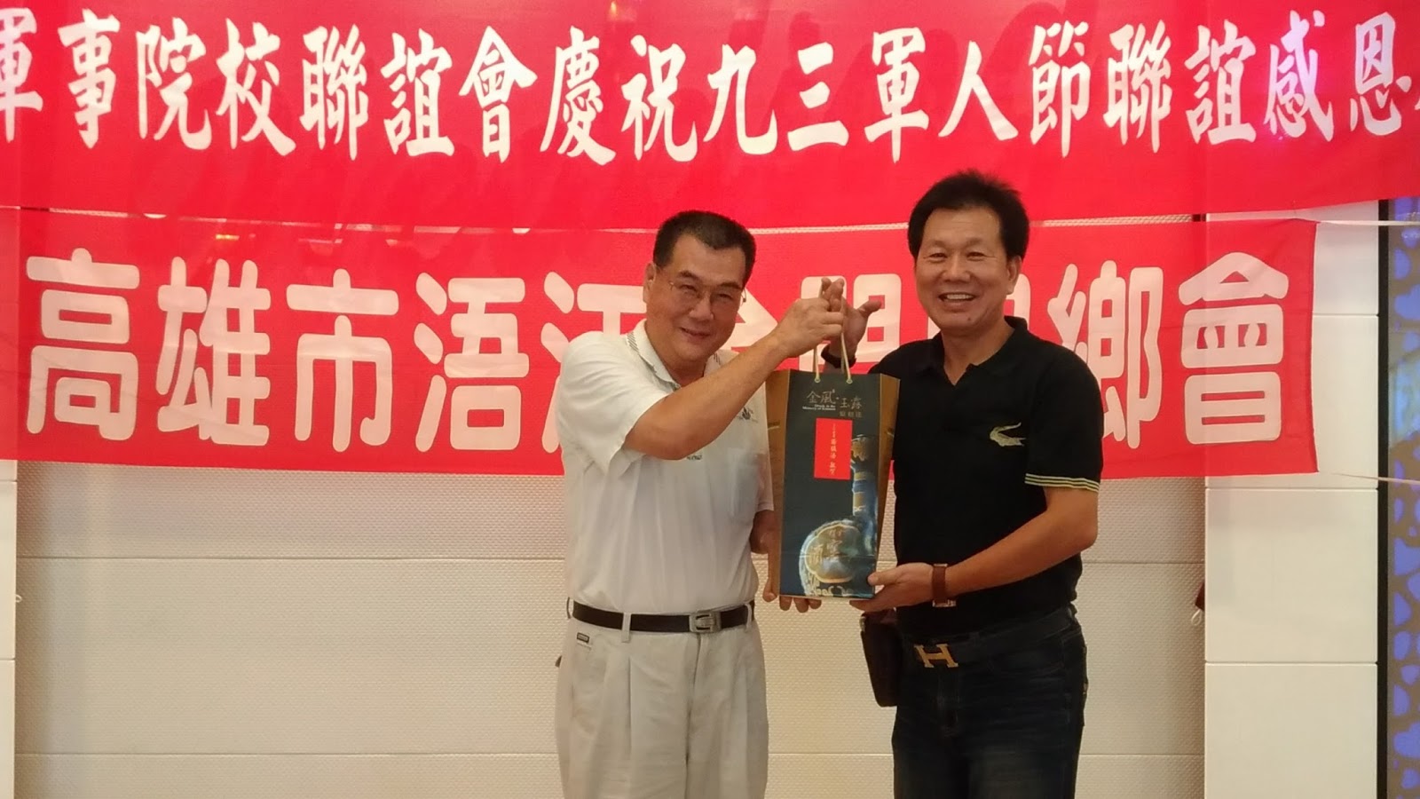 該聯誼會也特別感謝立委楊鎮浯南區服務處主任蔡忠盼伉儷、金門縣長陳福海致贈0.6金門高粱酒乙打,並由金門縣政府派駐南區服務處主任楊美雪代表致贈及致賀詞,與會貴賓並於會中特別祝賀九三軍人節快樂,有感金門鄉親青、少年朋友早年投身軍旅,數十年來為國家、社會、家鄉作了非常大的貢獻。