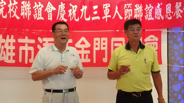 【記者于郁金/高雄報導】為慶祝九三軍人節,9月3日假高雄鳳山鳳大餐廳舉行「金門旅台軍事院校聯誼會慶祝九三軍人節聯合感恩餐會」,由此次聯絡的高雄市浯江金門同鄉由總幹事黃國田主持,共同慶祝這個屬於自己日子「九三軍人節」;甚至有遠從金門趕來,並帶來金門名產「炸麻花」,讓與會人員分享家鄉美味,溫馨感性。