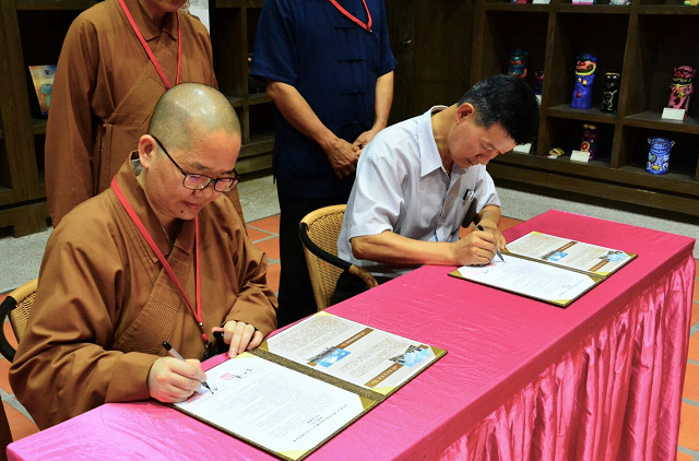 【記者于郁金/金門報導】金門文化園區歷史民俗博物館與佛光山佛陀紀念館簽署為友好博物館,兩館從去年博物館業務人員參訪交流後,於今年金門文管所邀請佛光山佛陀紀念館館長如常法師蒞金講演「博物館經營與管理」,分享長年從事博物館發展工作之藝術研究、典藏、教育等相關經營知識與管理經驗,會後並簽屬兩館合作協議書,未來雙方將推進兩館間學術、文化交流與合作,也期待透過友好博物館的締結,深化交流,共創長期、豐碩的文化藝術研究及策展成果。